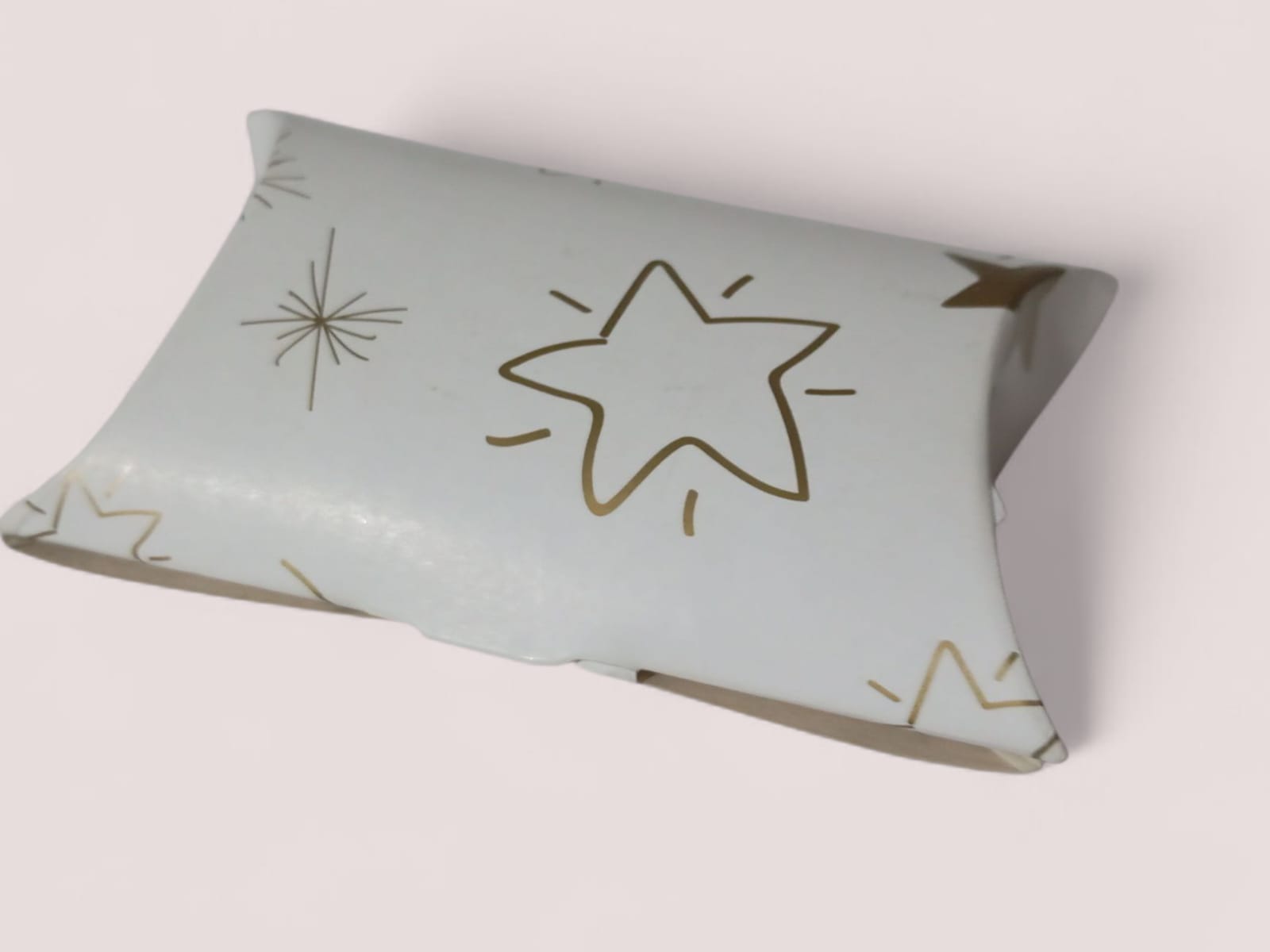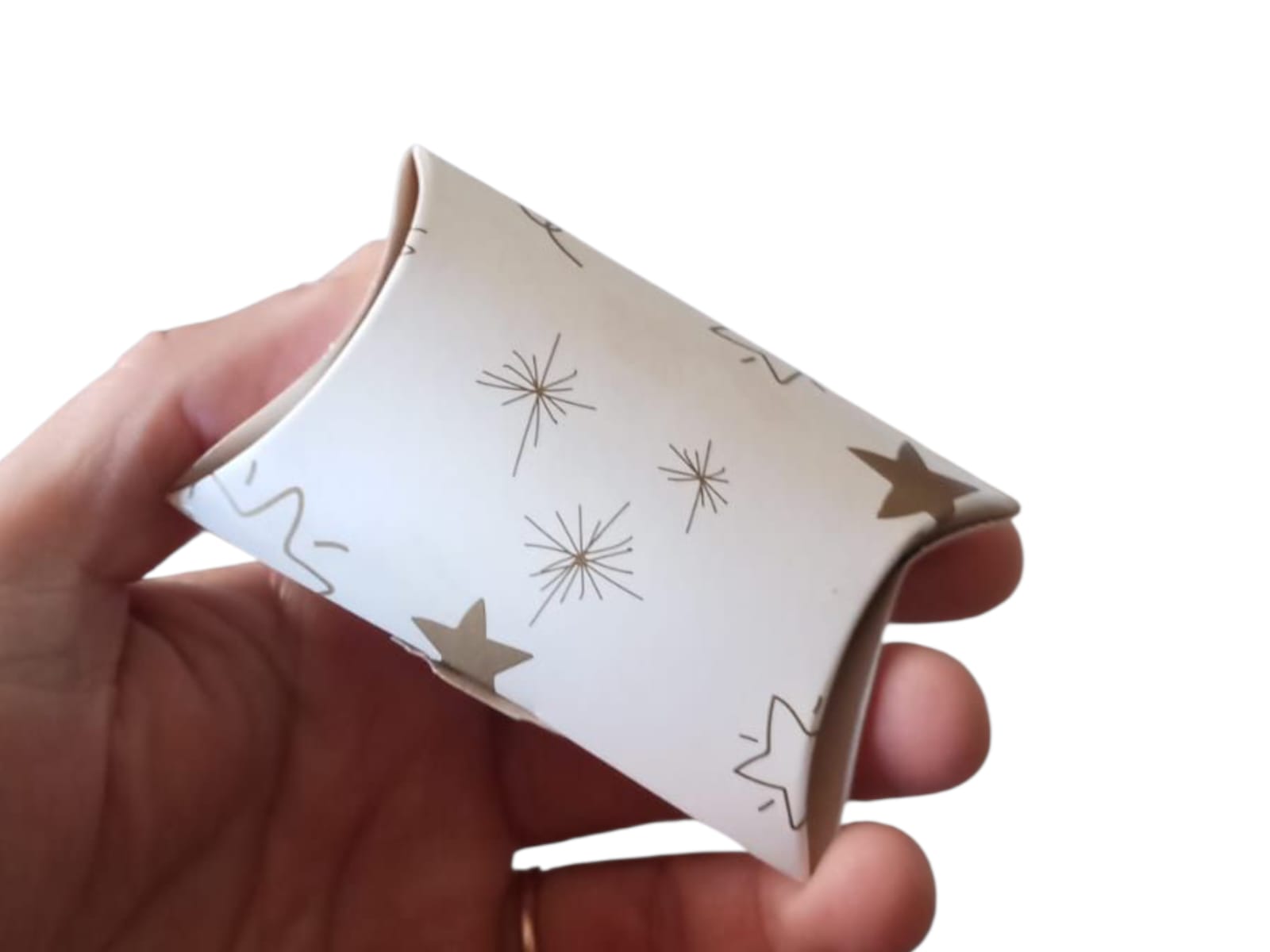 Caja almohada para souvenirs o bijoux, en cartulina blanca lisa o impreso en oro