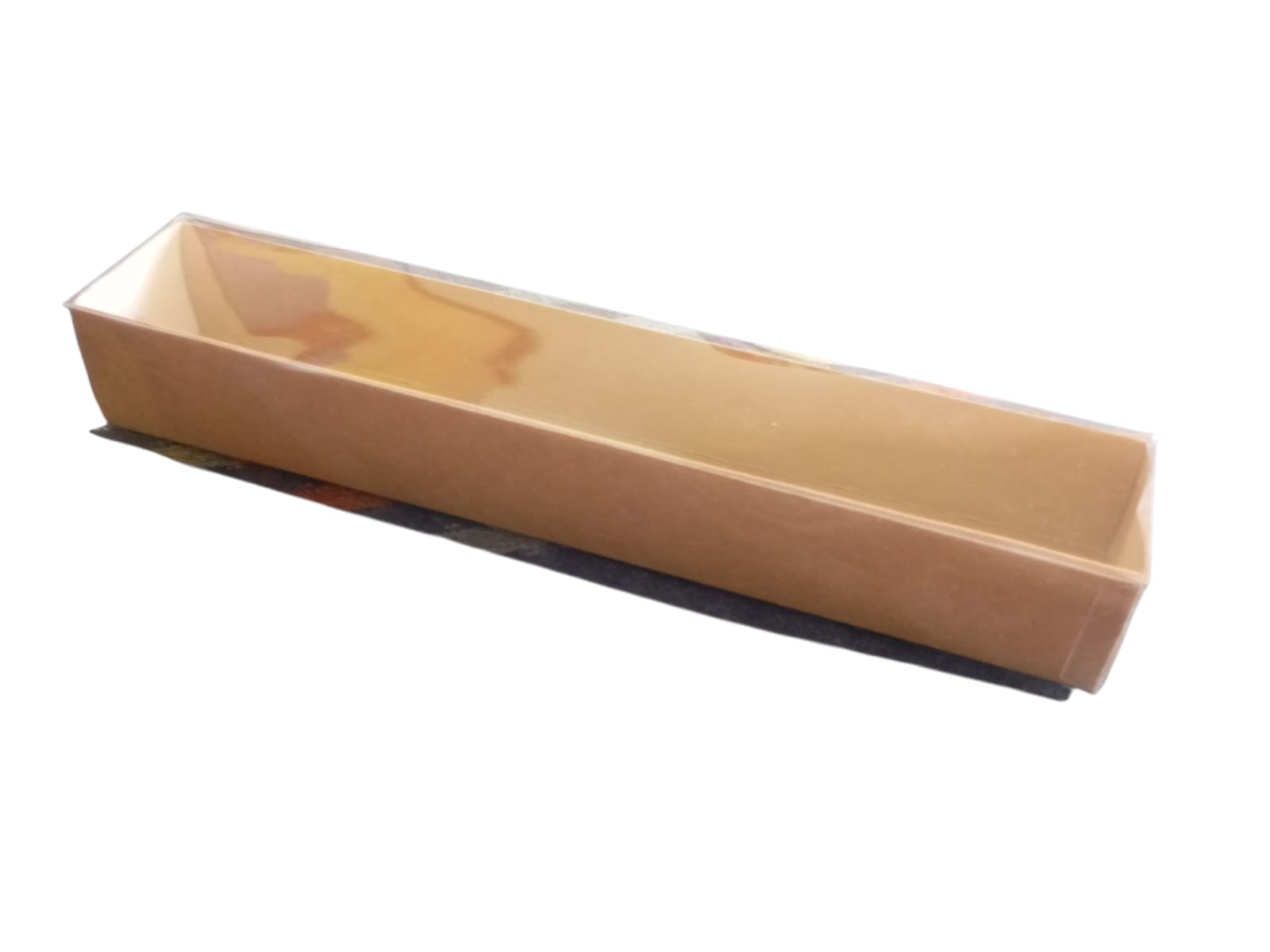 Caja CHOCOMENSAJE CORTO, base en cartulina Kraft y tapa de acetato